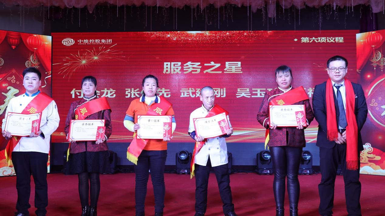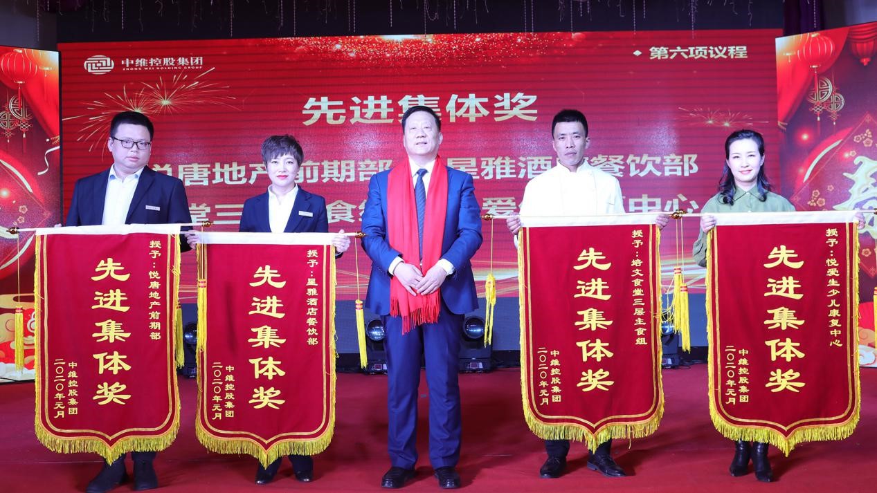 2020年1月18日,中維控股集團(tuán)舉行了以“恒心謀發(fā)展效益爭(zhēng)先、匠心鑄管理精益求精”為主題的2020年年會(huì),集團(tuán)郭秀忠董事長(zhǎng)、王文萍副董事長(zhǎng)、郭雅維副董事長(zhǎng)、郭雅磊總裁等領(lǐng)導(dǎo)出席。年會(huì)分為三部分:工作會(huì)議、迎新春聯(lián)歡會(huì)、年會(huì)晚宴。